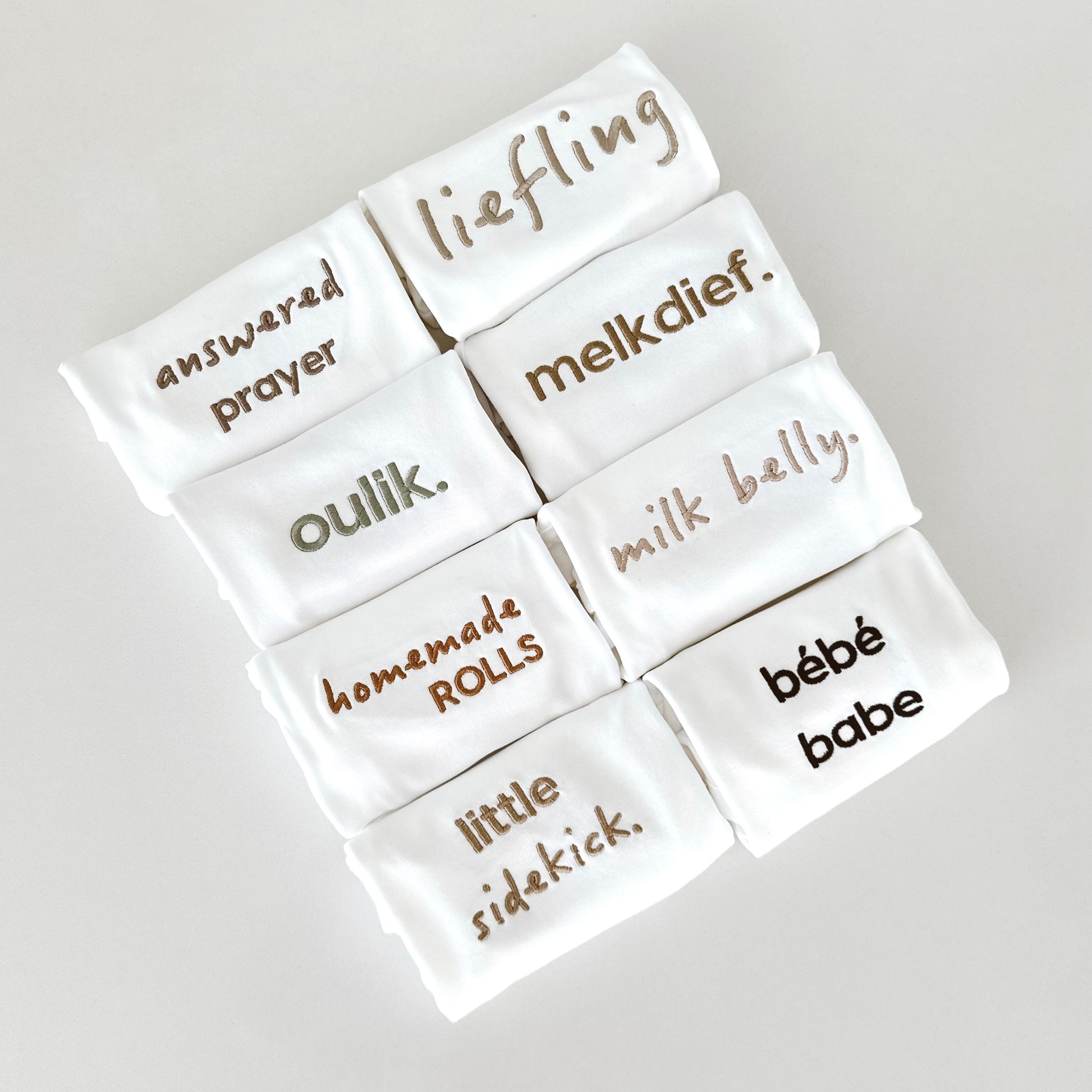 embroidery done by Mama Irma - babygrows imported to ensure top quality.