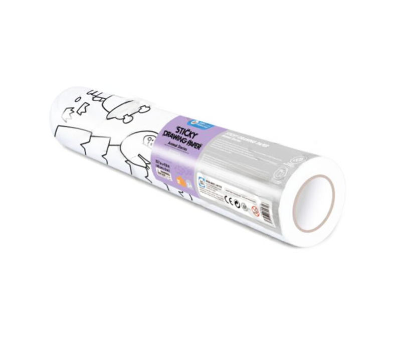 The colouring roll is adhesive so it can be stuck to surfaces while colouring and for display once completed!