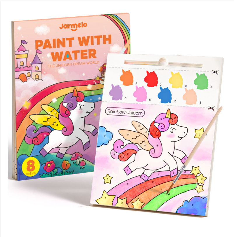 Revolutionary mess-free art experience where every page contains its own watercolour paints! Children simply dip the included brush in water, mix with the pre-printed paint on each page, and watch vibrant colours come to life. By adjusting water amounts, young artists can control colour intensity and create beautiful shading effects, encouraging creative experimentation.