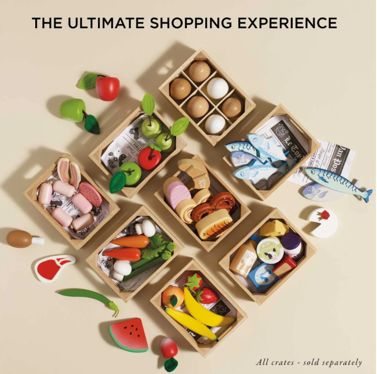 A charming addition to any play market, kitchen, or café, this crate helps develop fine motor skills, creativity, and an understanding of food groups through engaging, hands-on fun.